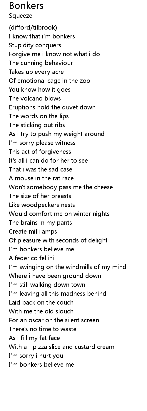 | I know that i' m bonkers | |