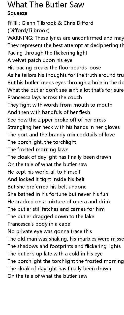 | Song | What The Butler Saw |