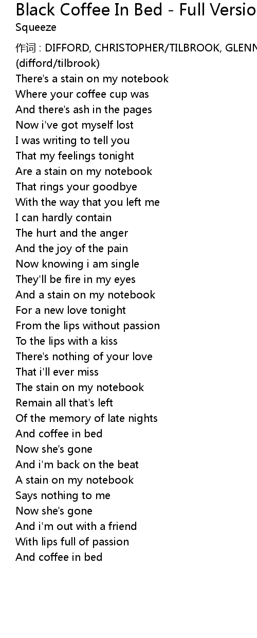 | 作词 : DIFFORD, CHRISTOPHER/TILBROOK, GLENN | |