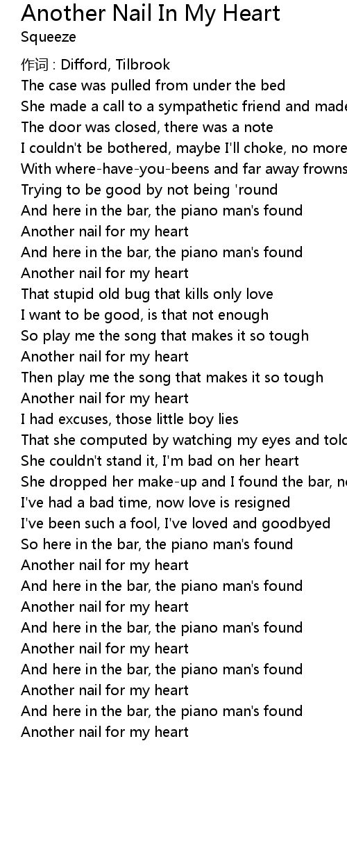 | Another nail for my heart | |