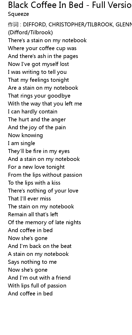 | Song | Black Coffee In Bed - Full Version |