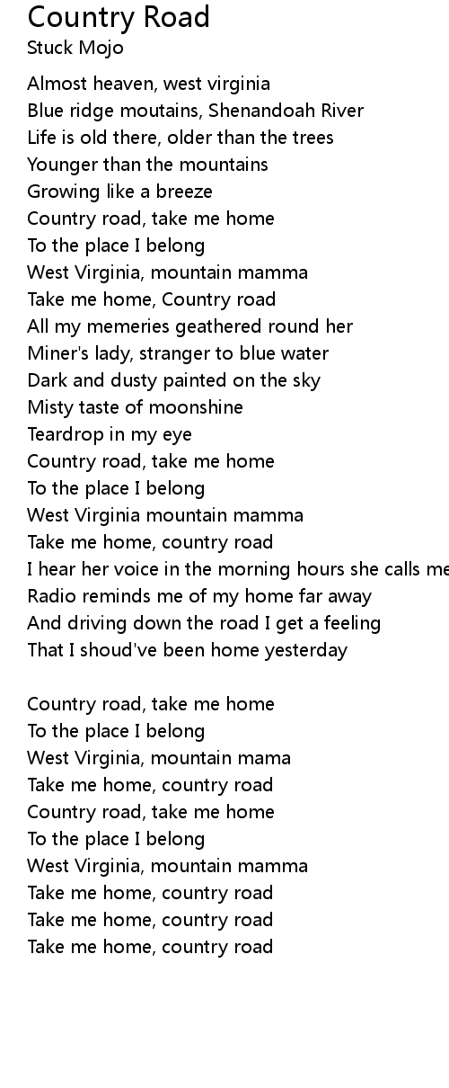 Take me home, Country road |