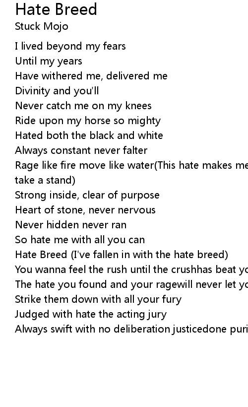 Hate Breed (I've fallen in with the hate breed) |