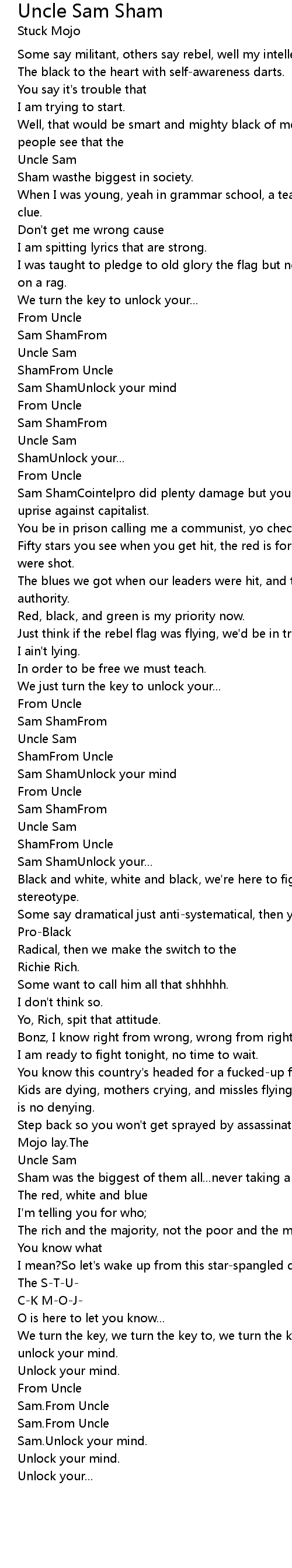Sam ShamCointelpro did plenty damage but you couldn't get alongso we manage uprise against capitalist. |