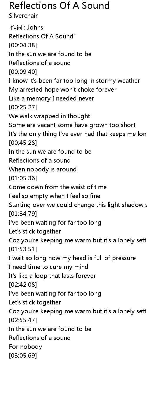| [00:04.15] | Reflections Of A Sound" |