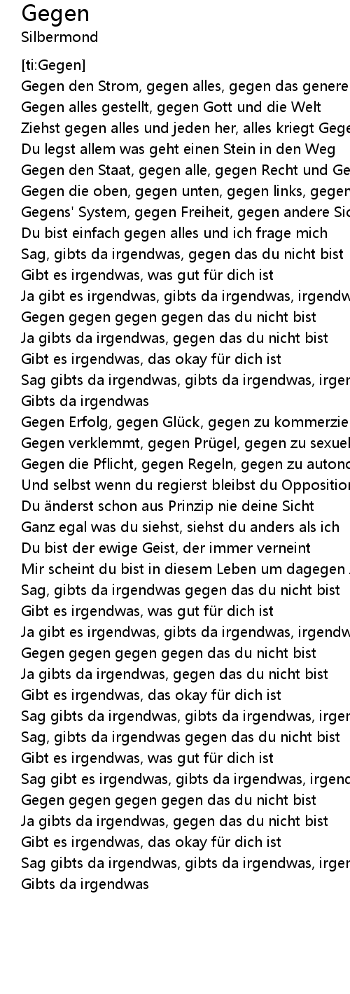 | [00:46.38] | Gegen die oben, gegen unten, gegen links, gegen rechts |