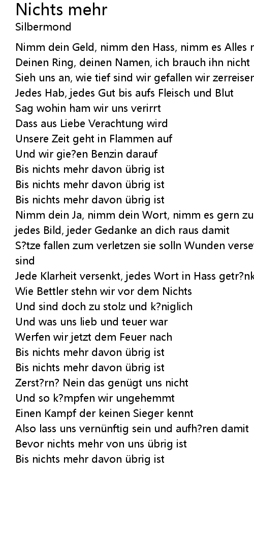 | [00:21.53] | Nimm dein Geld, nimm den Hass, nimm es Alles mit |