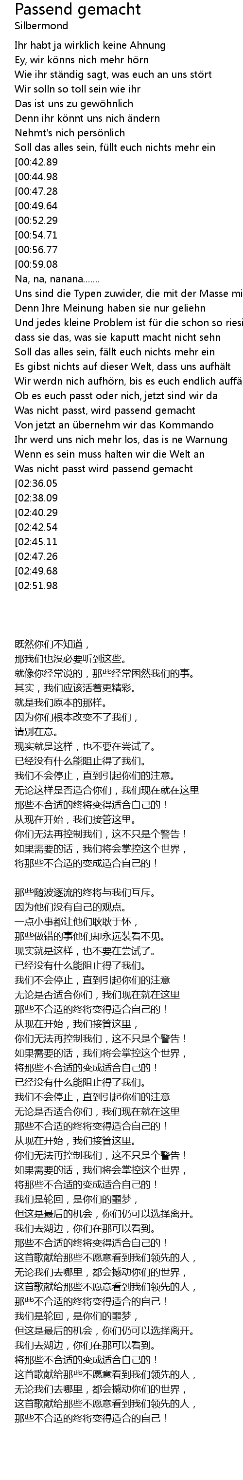 | [03:01.36][02:42.54] | Was nicht passt wird passend gemacht |