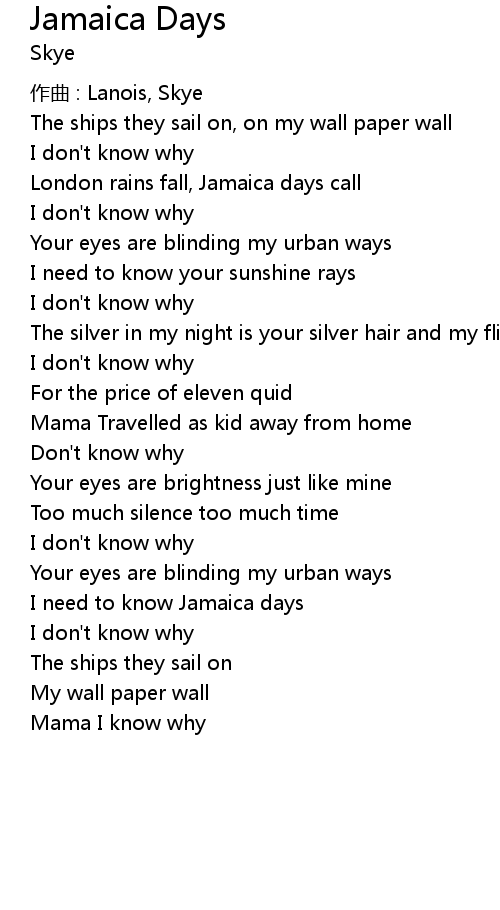 | Song | Jamaica Days |