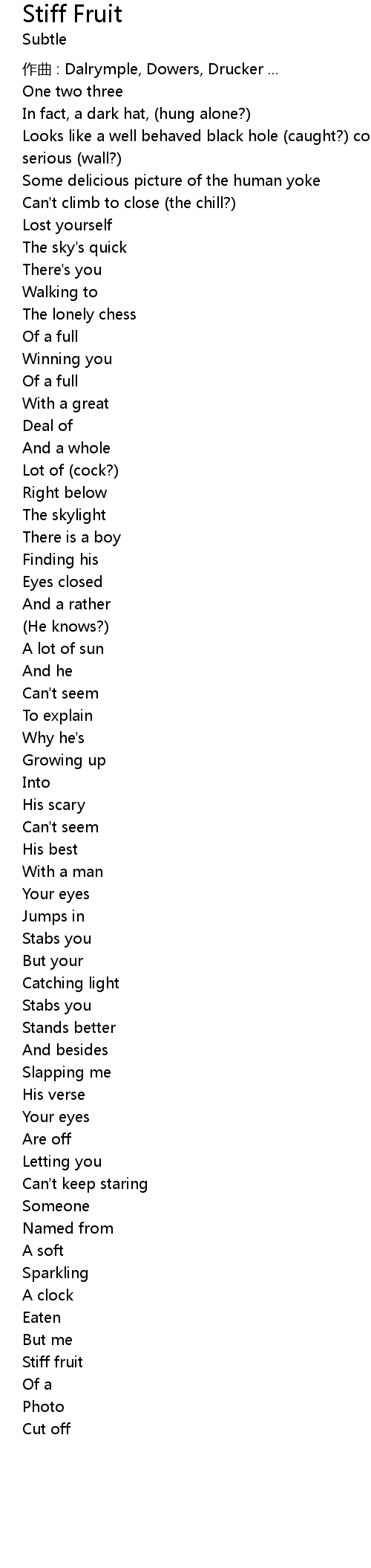| Song | Stiff Fruit |