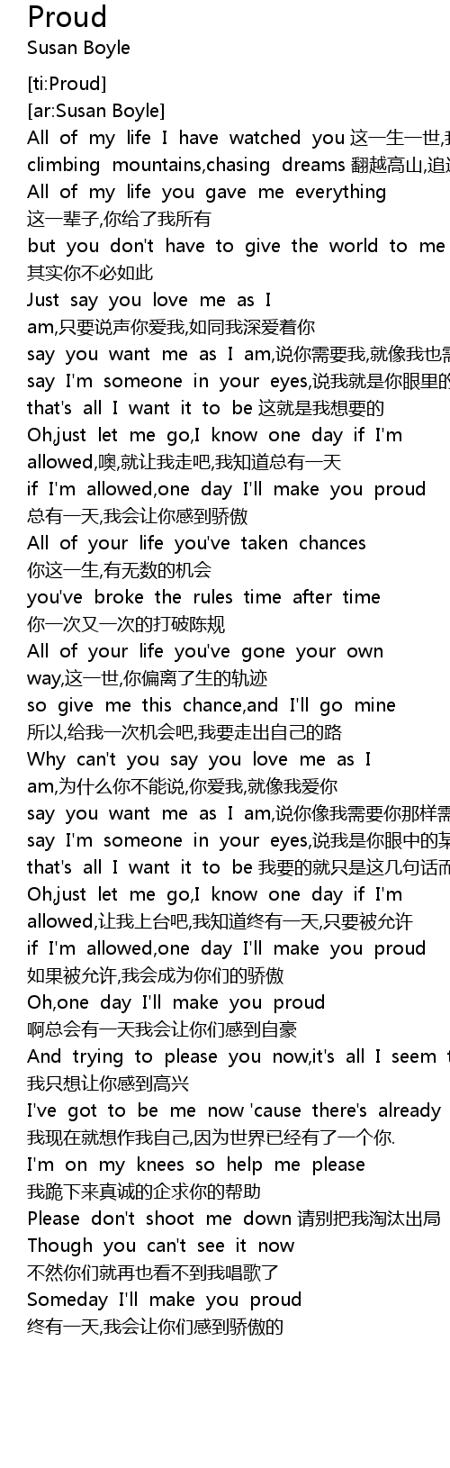 | [02:21.504] | Oh,one day I'll make you proud 啊总会有一天我会让你们感到自豪 |