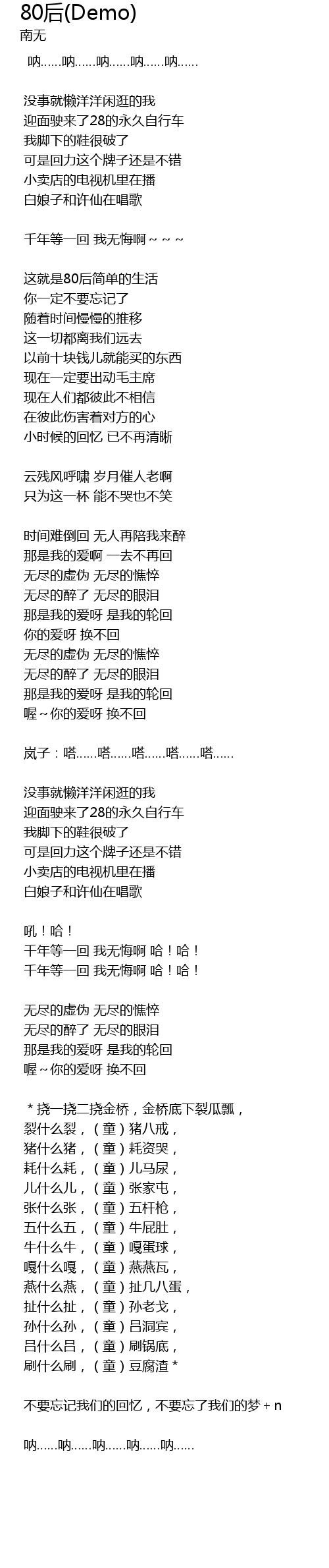 | 耗什么耗,(童)儿马尿, | |