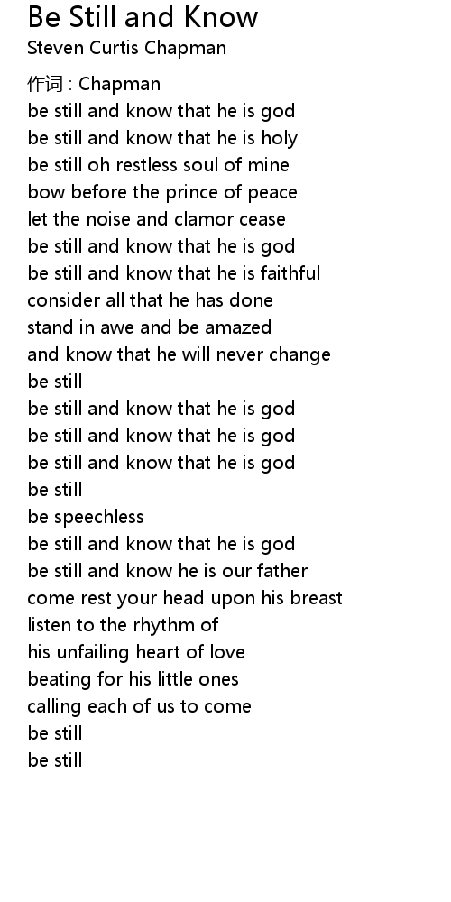 | be still and know that he is god | |