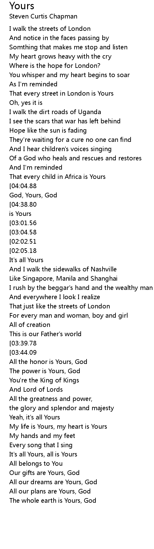 And its all Yours, God, Yours, God |