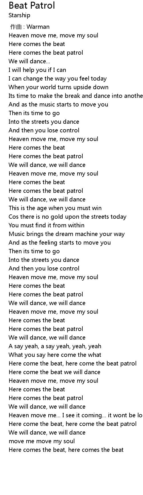 | [03:30.36] | Here come the beat, here come the beat patrol |