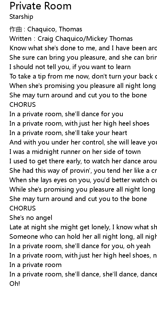 | In a private room, she' ll dance, she' ll dance, dance for you | |