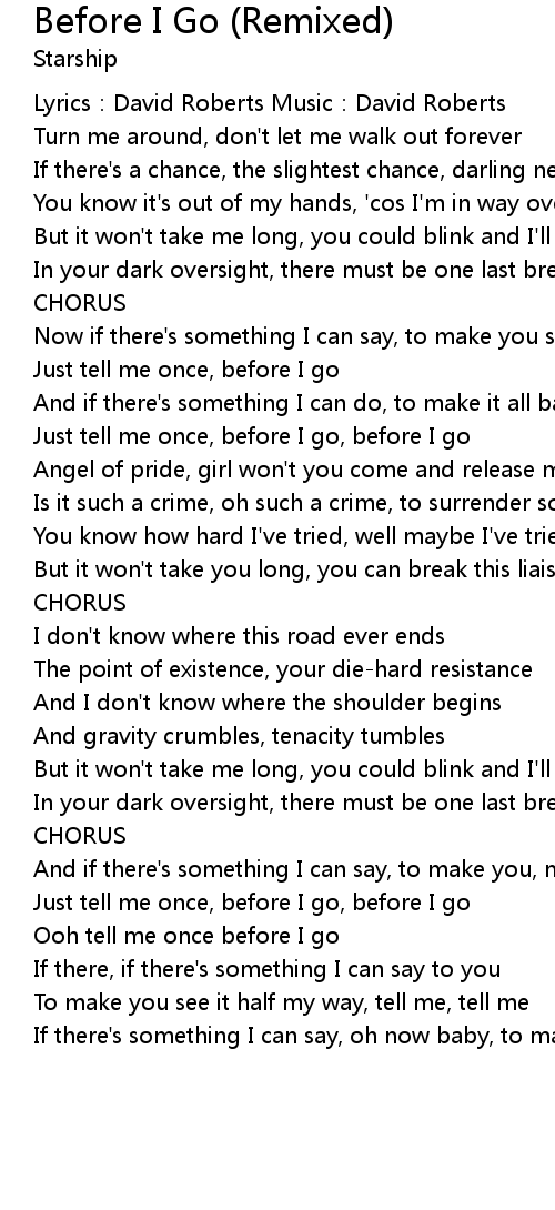 | Just tell me once, before I go, before I go | |