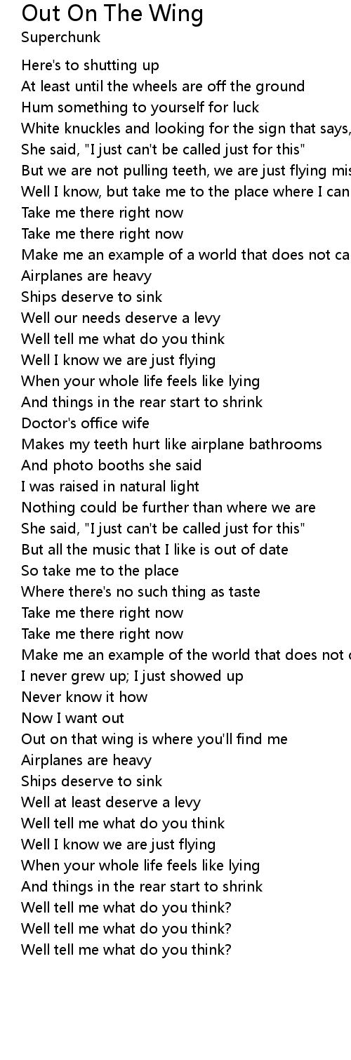 Out on that wing is where you'll find me |