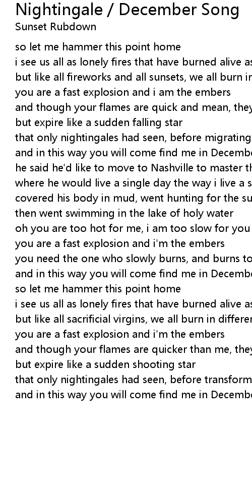 and in this way you will come find me in December |