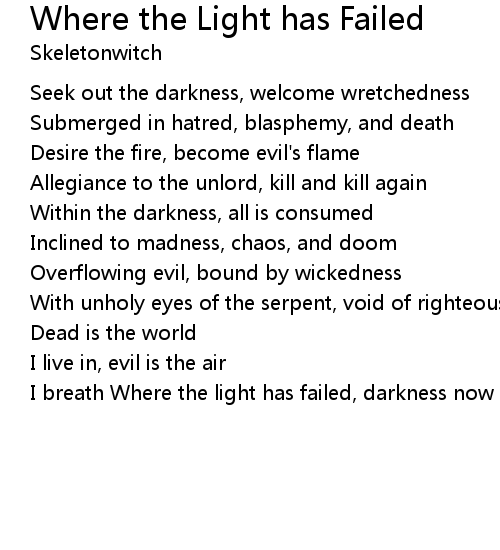| I breath Where the light has failed, darkness now prevails |