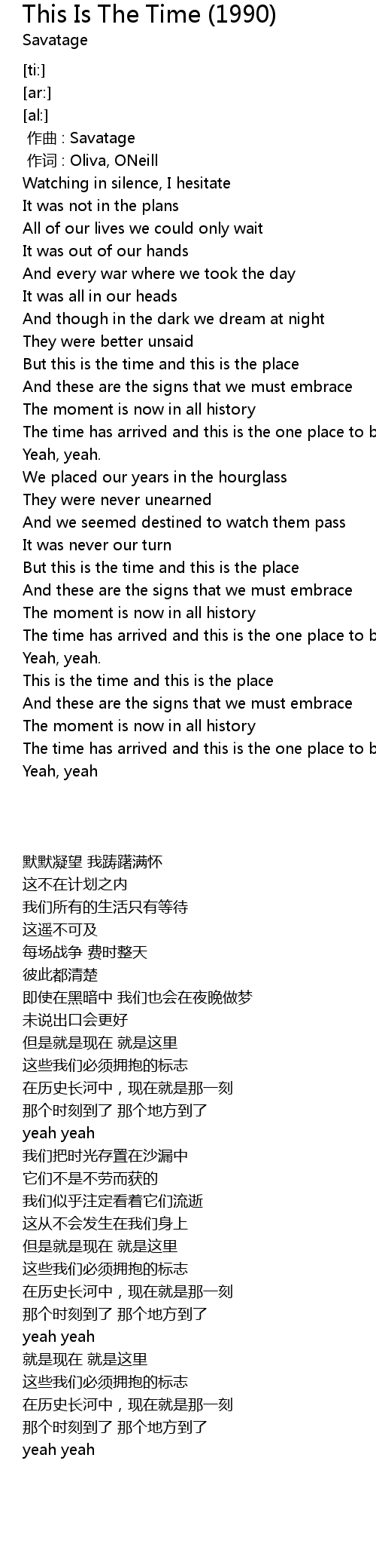 | [04:08.99] | This is the time and this is the place |