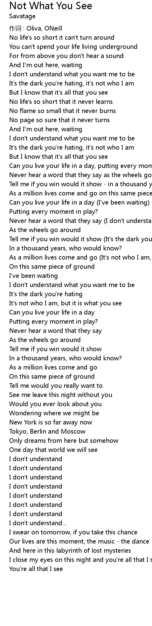 | As a million lives come and go It' s not who I am, but it is what you see | |