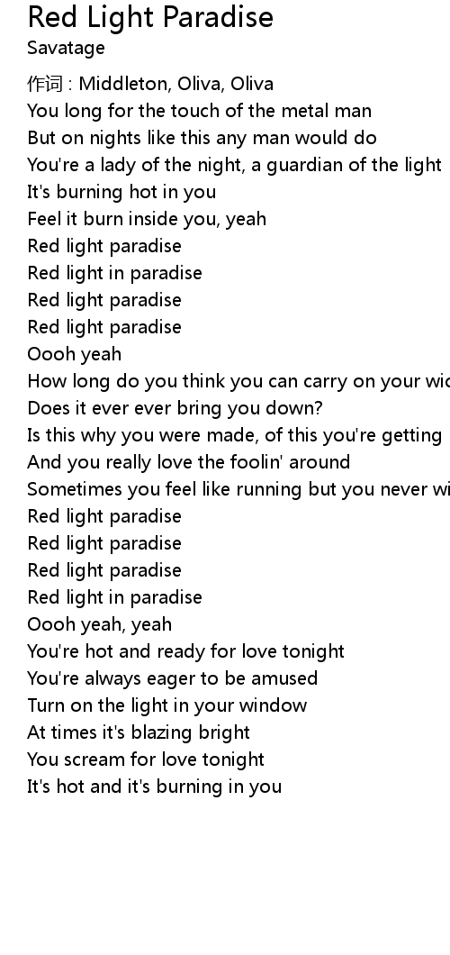 | Song | Red Light Paradise |