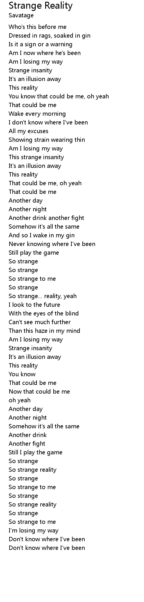 So strange... reality, yeah |