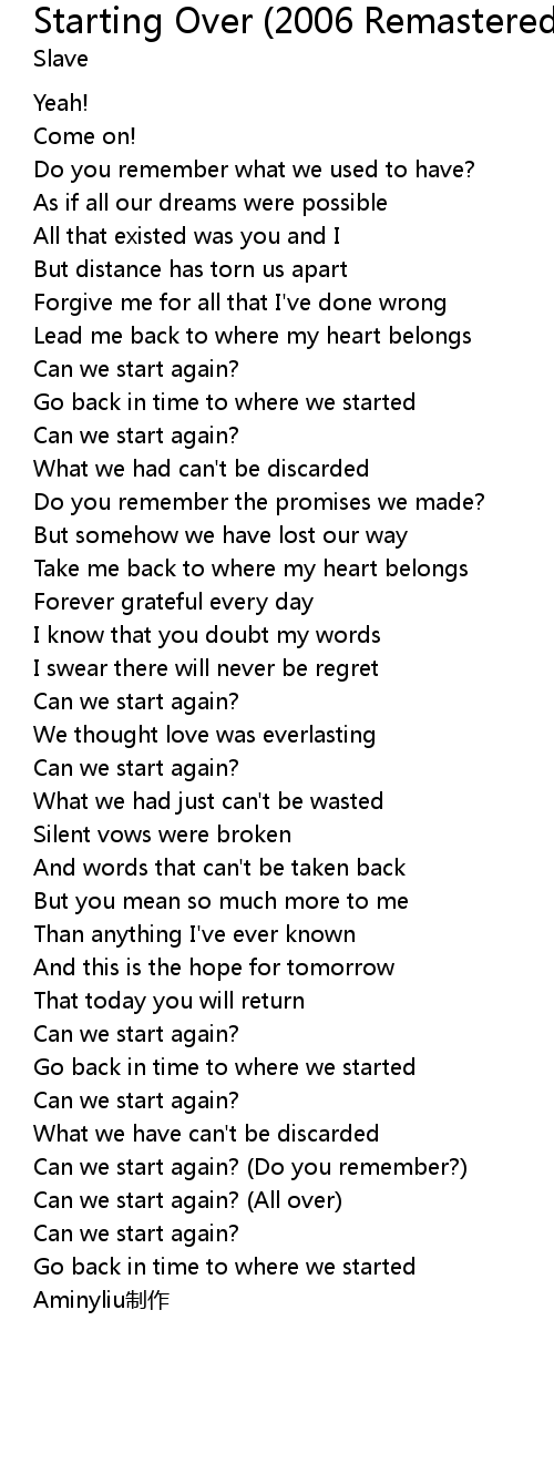 | [03:25.77] | Can we start again? (Do you remember?) |