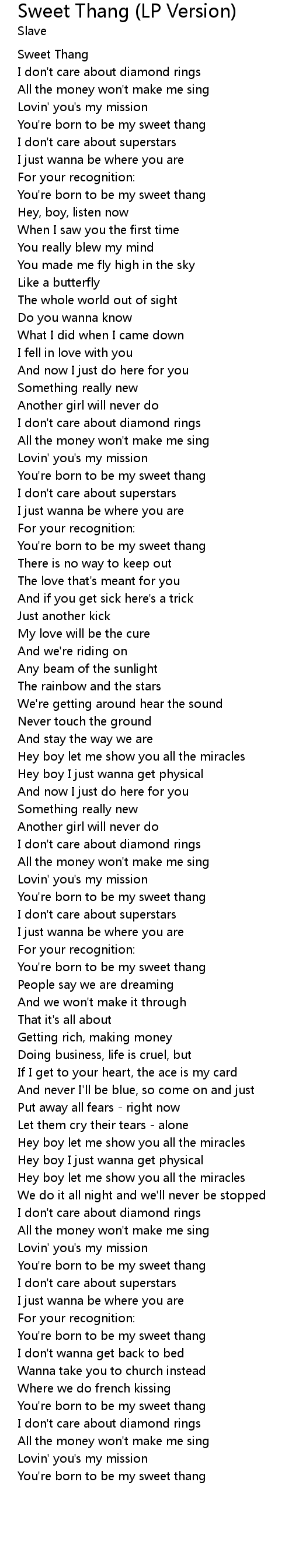 You're born to be my sweet thang |