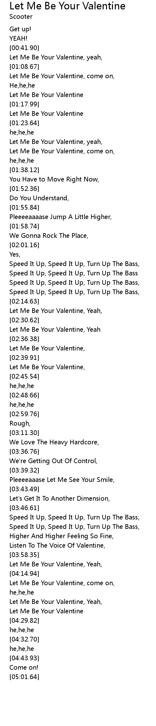 Let Me Be Your Valentine, Yeah, |
