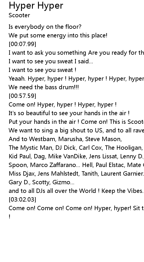 Yeaah. Hyper, hyper ! Hyper, hyper ! Hyper, hyper ! |