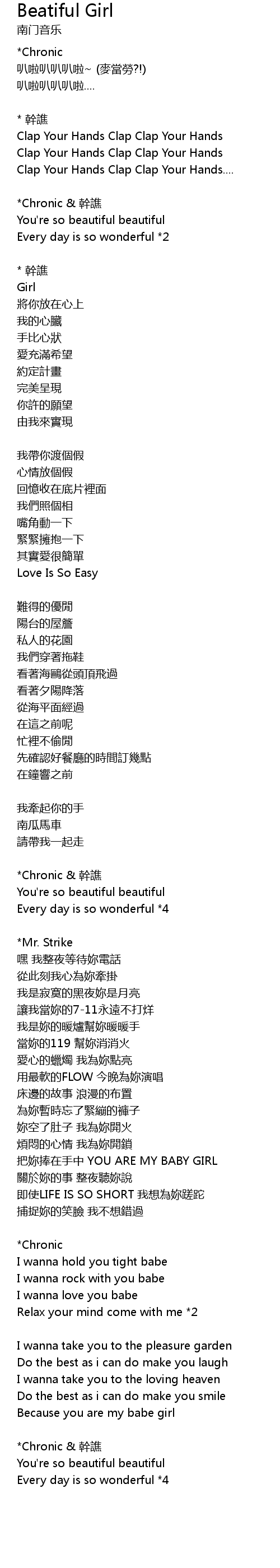 | Song | Beatiful Girl |
