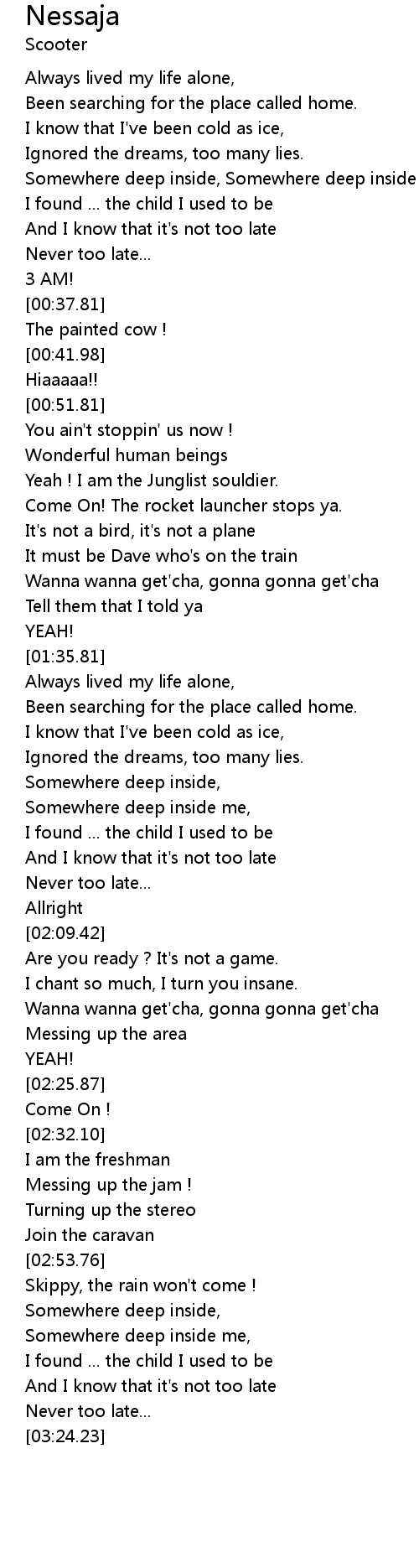 | [03:18.84] | Never too late... |