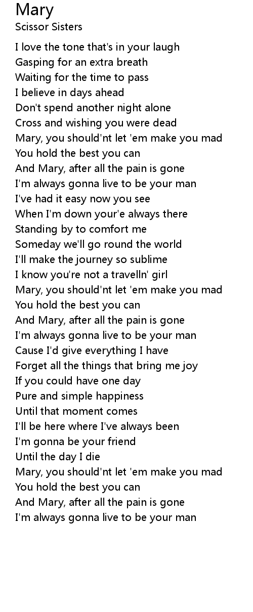 Mary, you should'nt let 'em make you mad |