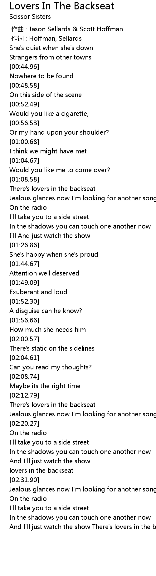 | [02:30.40] | lovers in the backseat |