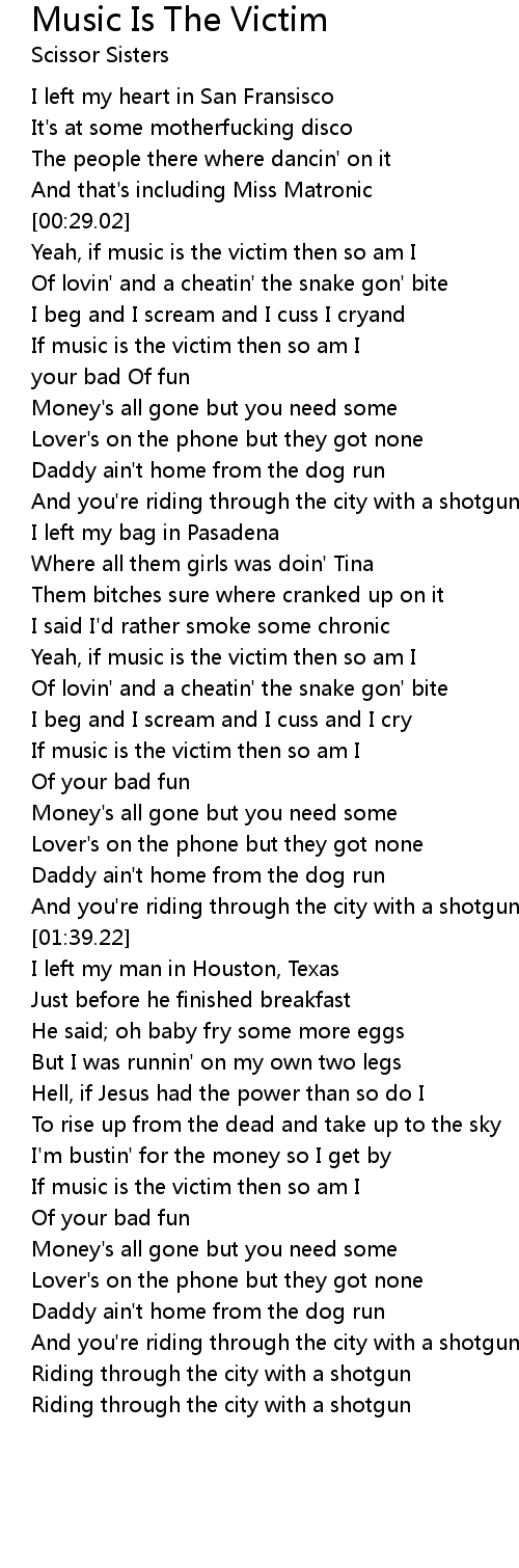Yeah, if music is the victim then so am I |