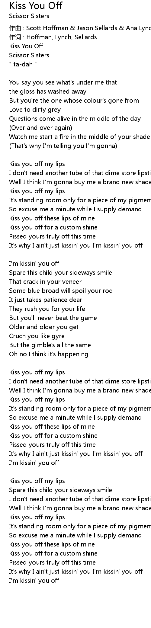 | Kiss you off these lips of mine | |