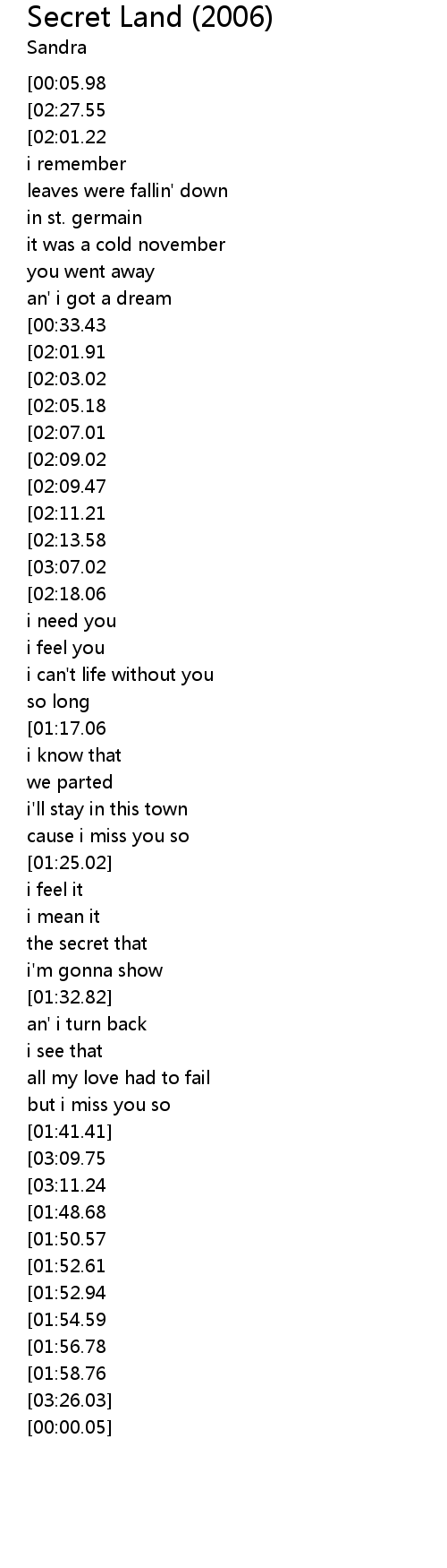 Secret Land (2006) Lyrics