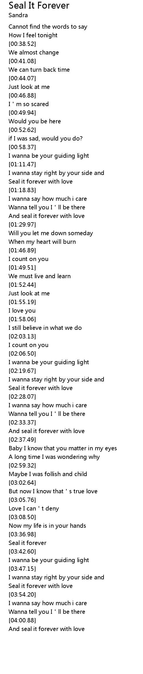 | [03:40.29] | Seal it forever |