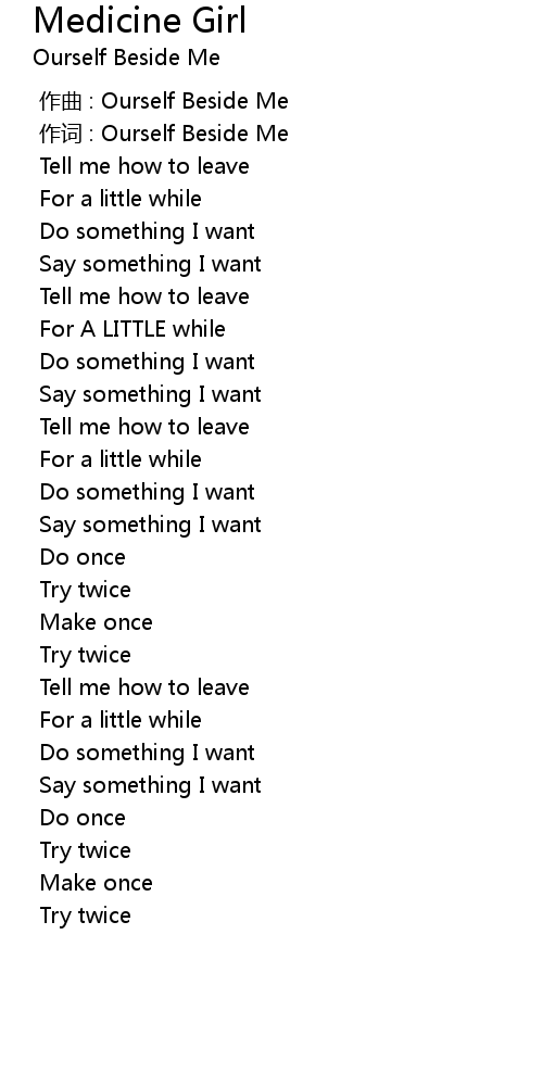 | [00:01.000] | 作词 : Ourself Beside Me |