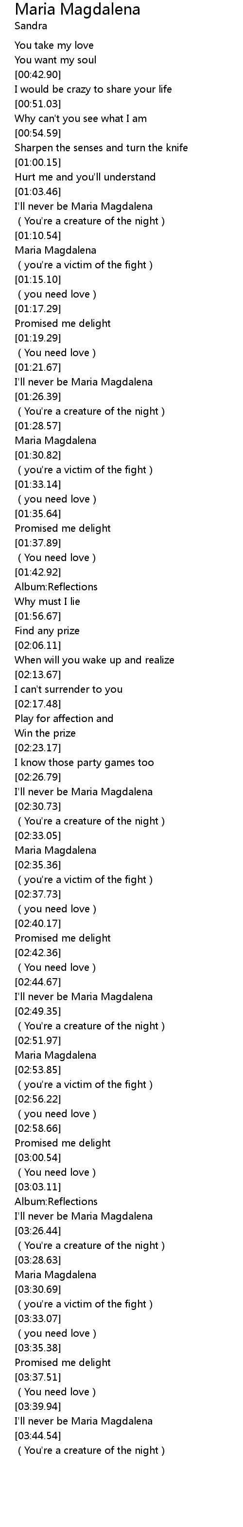 | [03:41.63] | I'll never be Maria Magdalena |