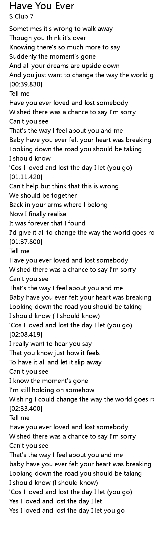 | [01:40.300] | Have you ever loved and lost somebody |