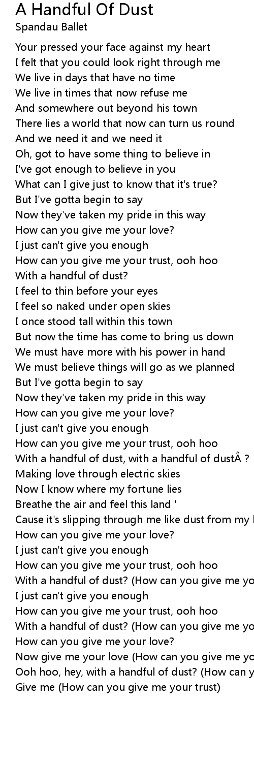 | With a handful of dust? (How can you give me your love?) | |