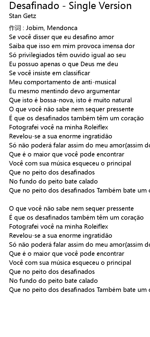 | Que no peito dos desafinados Tambe m bate um cora o |