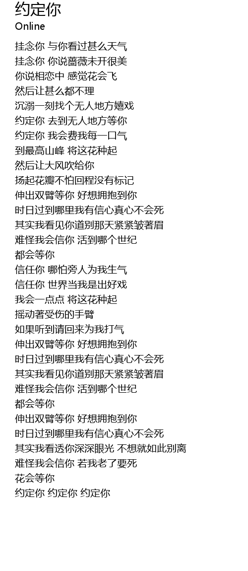 | [03:33.14] | 约定你 约定你 约定你 |
