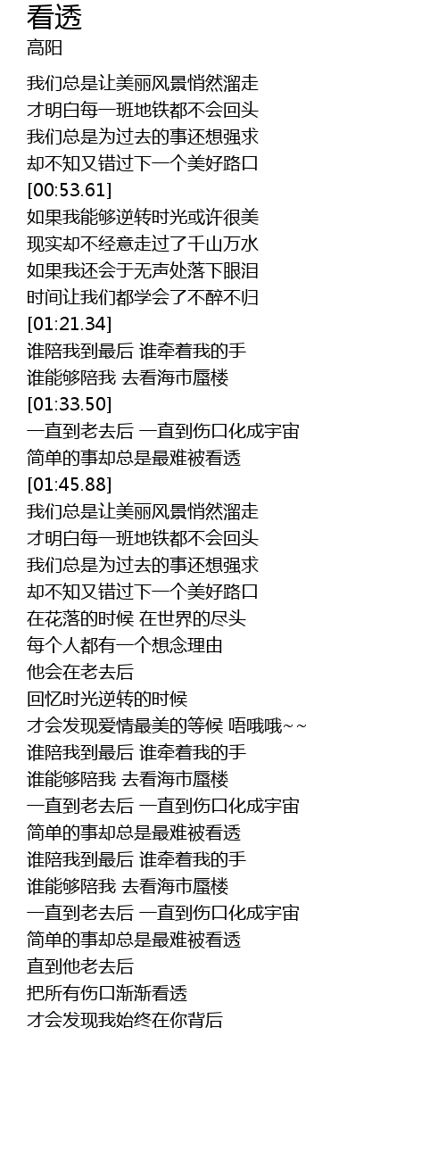 | [00:48.63] | 却不知又错过下一个美好路口 |