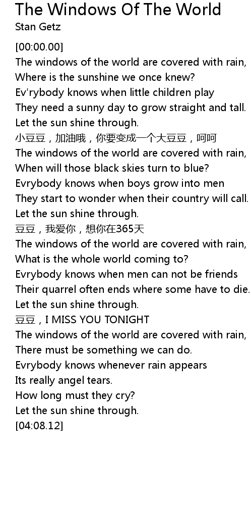 | Song | The Windows Of The World |