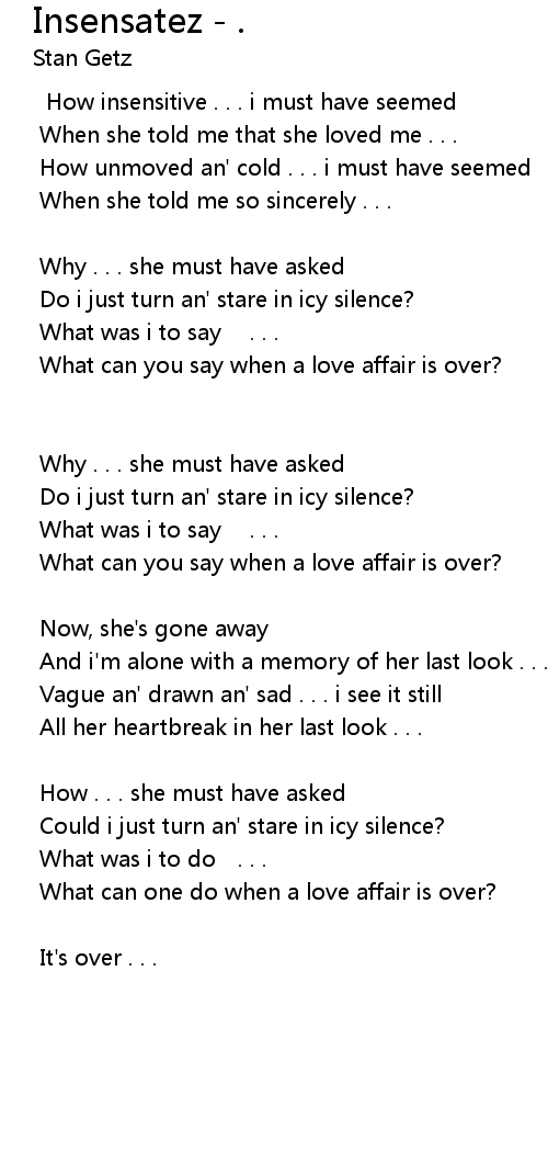 | How insensitive . . . i must have seemed | |