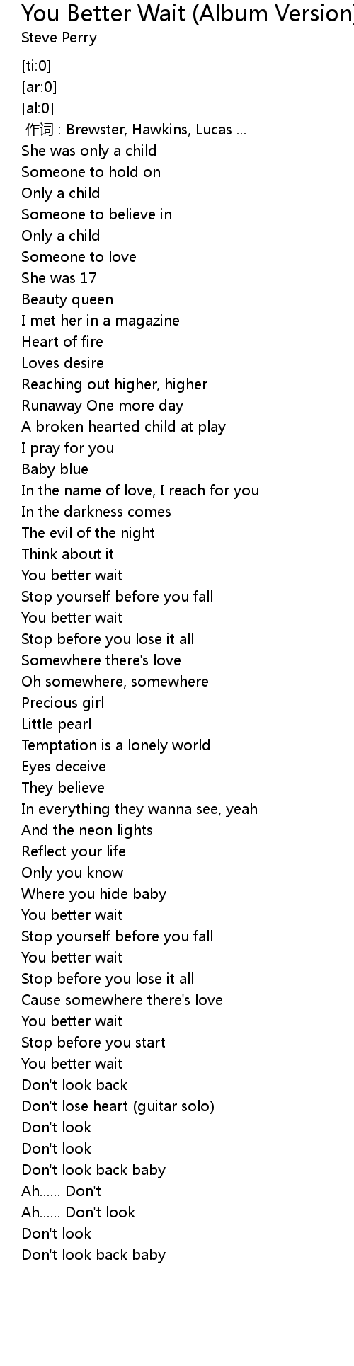 | [00:00.00] | 作词 : Brewster, Hawkins, Lucas ... |